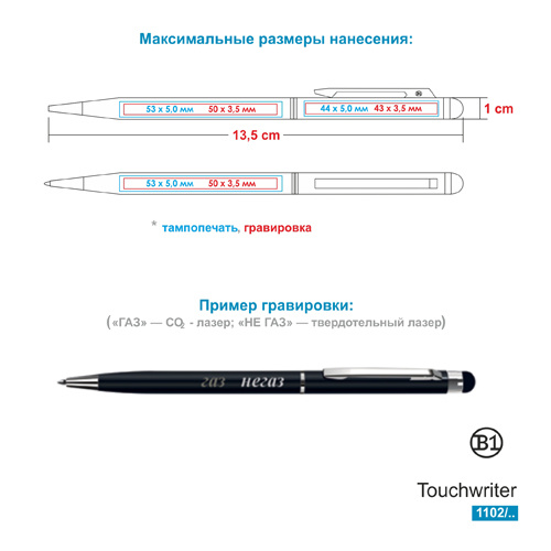 TOUCHWRITER, ручка шариковая со стилусом для сенсорных экранов, зеленый, серебристый