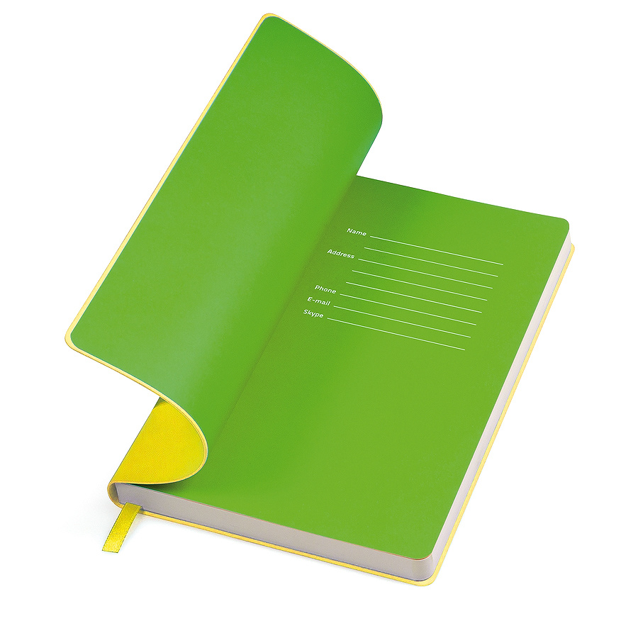 Бизнес-блокнот "Funky" с цветным форзацем, мягкая обложка, в линейку, желтый, зеленый