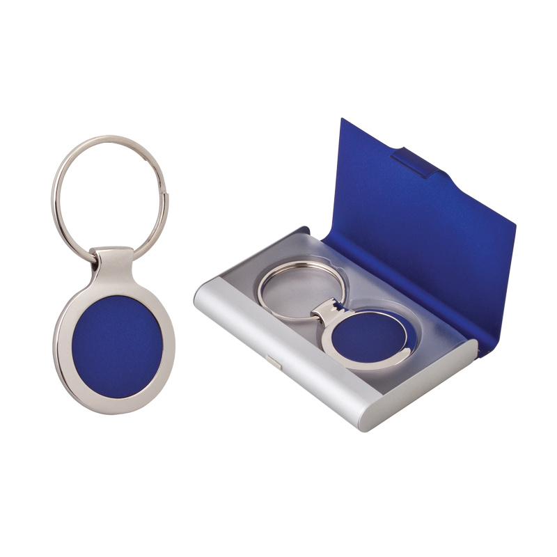 Набор подарочный "Статус", визитница с брелоком, синий/серебро