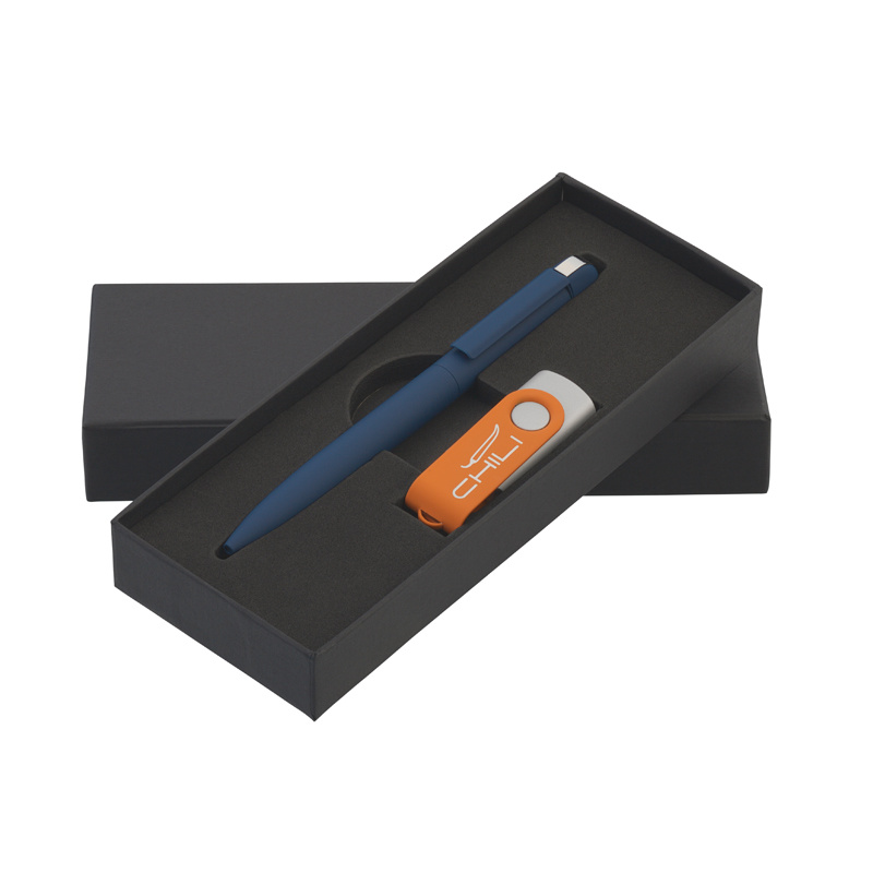 Набор ручка + флеш-карта 8 Гб в футляре, темно-синий/оранжевый