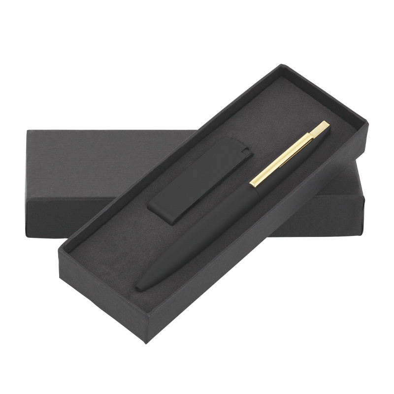 Набор ручка + флеш-карта 8 Гб в футляре, прорезиненный черный/золото