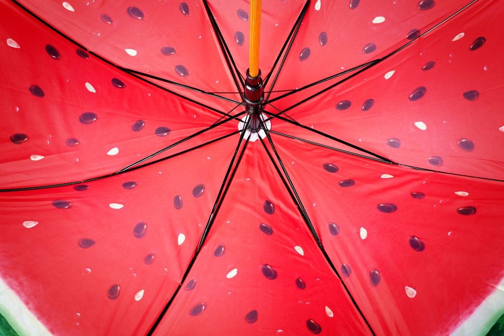 Этот зонт с двухслойным куполом снаружи выглядит просто черным, но стоит ему качнуться на ветру – и все увидят необычную «фруктовую» изнанку. Сочный красный арбуз, контрастируя с хмурым дождливым пейзажем, поднимет настроение не только владельцу зонта, но и всем окружающим. Зонт, под которым всегда солнечное настроение, – отличный источник оптимизма в дождливый день!Дизайн: Анна ГорковецИсключительное право: ООО «Проект 111»